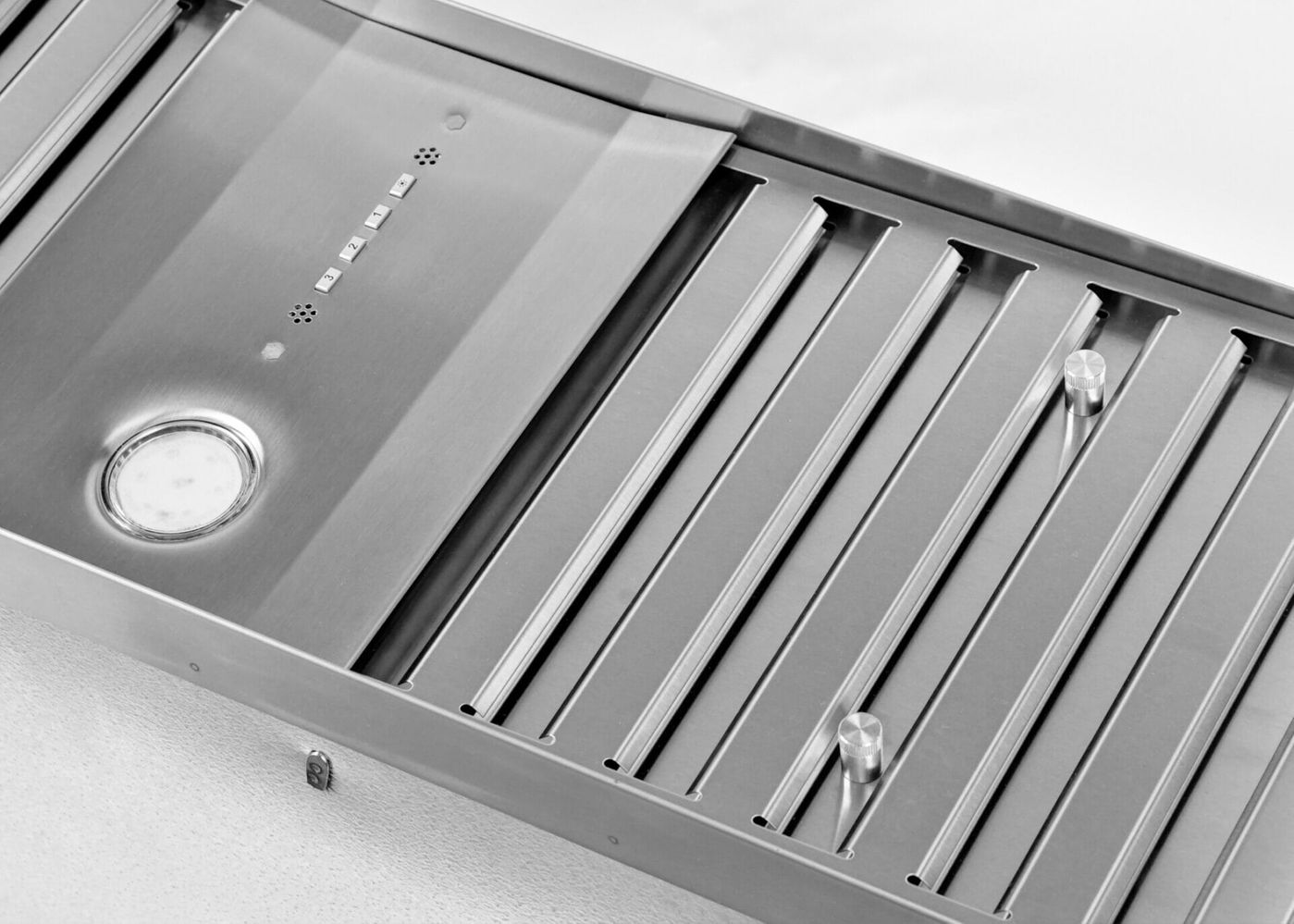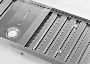 2 stainless steel baffle filters reduce air movement sound and improve ventilation performance.